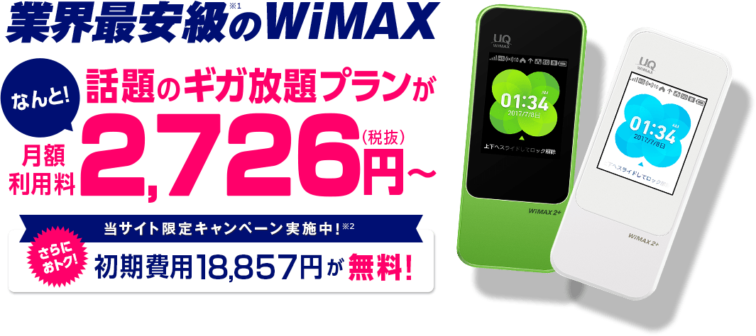 Broad WiMAXは、なんと月額2,726円でスタートすることが出来ます。もちろん、インターネット使い放題の「ギガ放題プラン」の料金です。