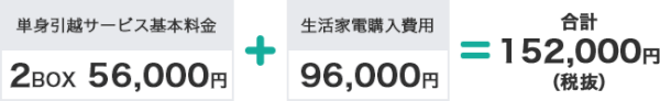 家具家電があると、自分の荷物も併せて2つのボックスが必要になるのが通常です。この場合、費用は56,000円となります。