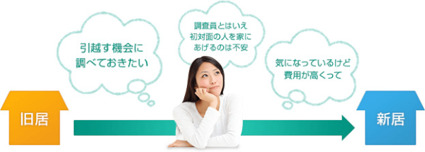 特に、一人暮らしの女性の方などは、引越し機会に調べておきたい方が多いと思います。しかし、調査の人が家に来たり、高額な料金が気になったりして、結局依頼せずに新生活をスタートしてしまう人も多いようです。