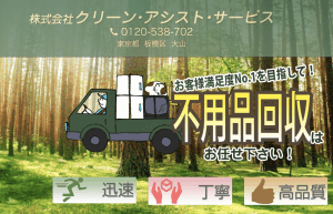 クリーン・アシスト・サービスは、板橋区大山を拠点に不用品回収作業をメインにサービスを展開している業者です。迅速・丁寧・高品質をモットーに、経験年数10年以上のベテランスタッフが丁寧に作業を行います。