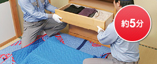 日通のフルプランの場合は、タンスの中身についてはそのまま運ぶことが出来ます。衣類をしまったまま、抽斗を取り出してそのまま搬出・搬入が可能ですので、新居に到着後もタンスに抽斗をセットするだけなのでほとんど時間を取りません。