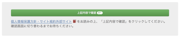最後に「個人情報保護方針・サイト規約外部サイト」を確認し、緑色のボタンを押します。
