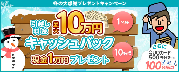 以上です。最大10万円を1名、1万円を10名、クオカード500円分が100名に当たる冬のお得なキャッシュバックキャンペーンです。